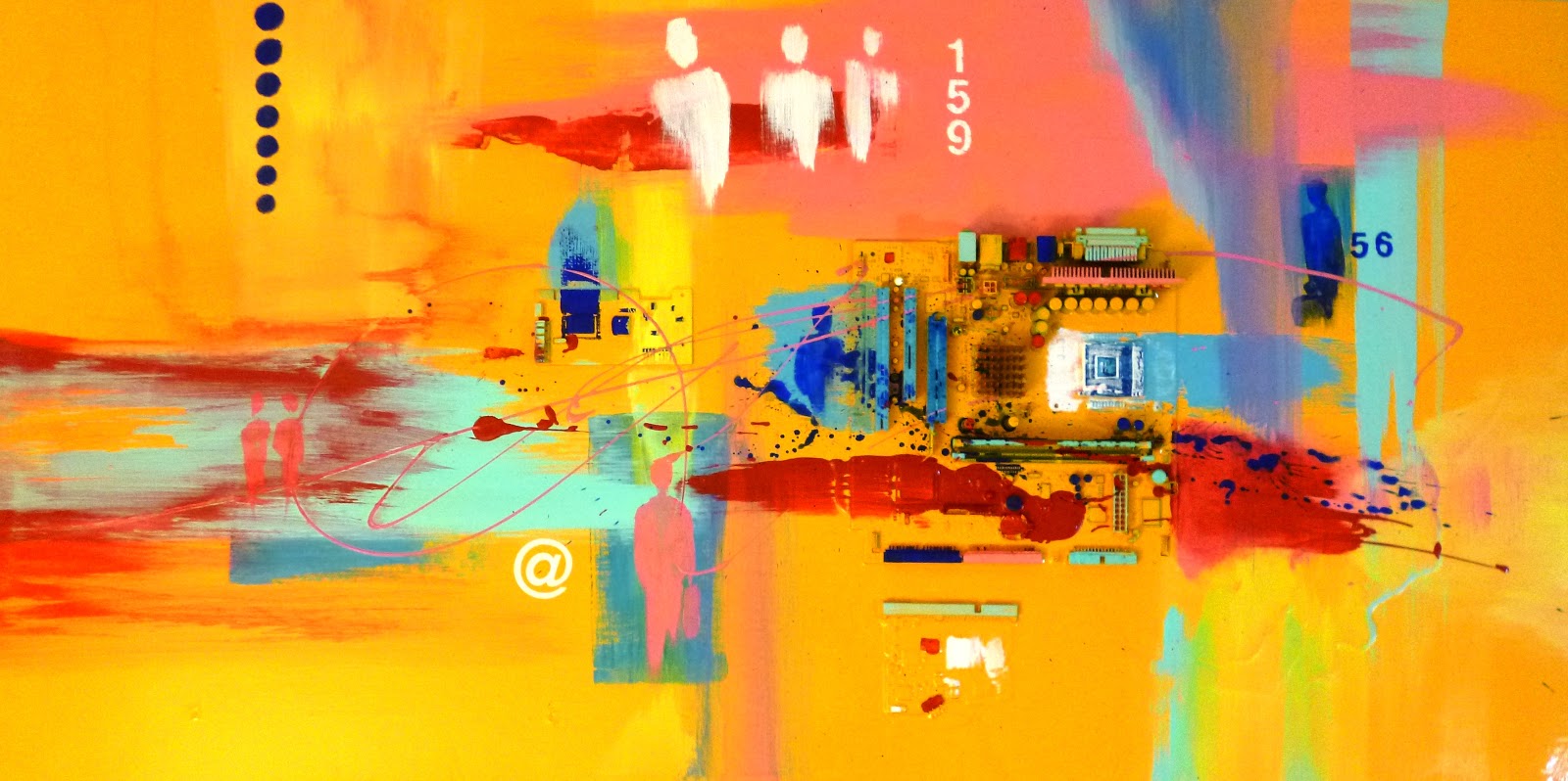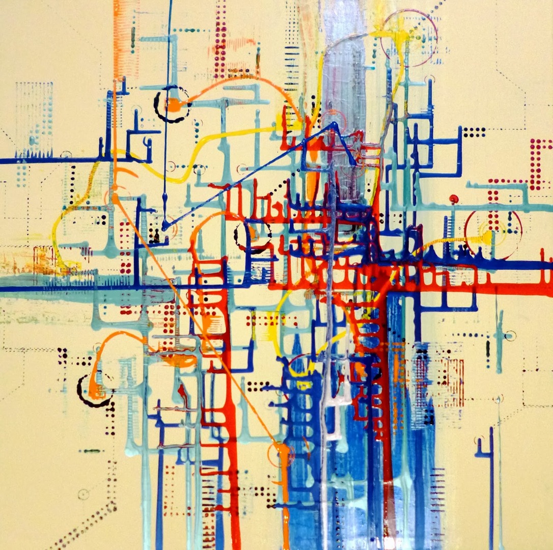 Carlos Printe uses the latest materials and techniques to represent the world we live in. Using raw saturated pigments, geometric shapes, and embedding modern-day objects such as computer boards,